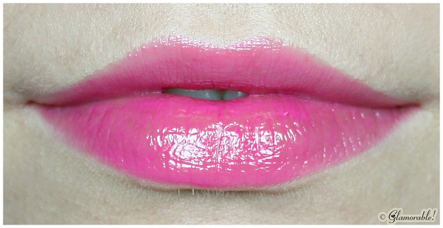 The formula is something between creamy and gel-like, and feels buttery during application. I don’t hate that, but from certain angles it makes my lips look greasy. According to various blogs, the pigmentation varies from shade to shade, and Pink Shock is one of the more pigmented colors in this mini-collection. I have naturally light lips, so the color of lipsticks and lip glosses shows up really well. For instance, when I compare my swatch to other swatches online, it really looks like we’re not even using the same product!
