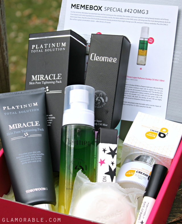 After buying both previous editions of the OMG Memebox I’ve come to expect a selection of products that feature unusual ingredients. This time around we received five full-sized items, and even though to me personally they didn’t have the OMG factor I keep hoping for, I really liked the selection.