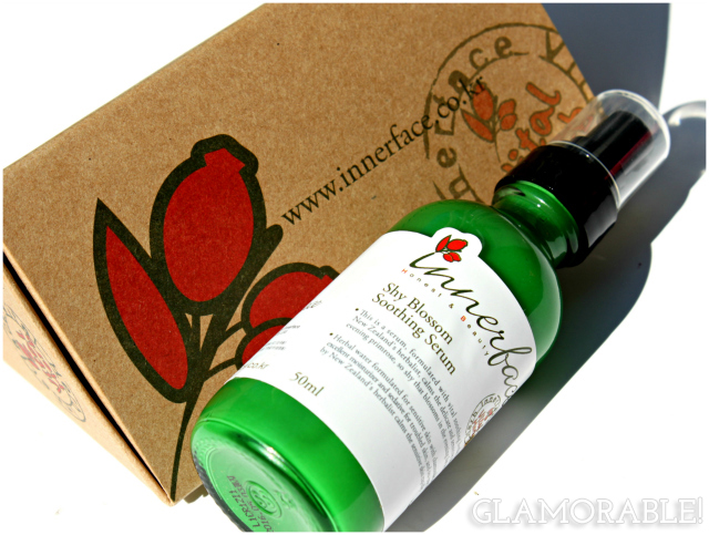 Innerface Shy Blossom Soothing Serum – According to the product card, this all-natural serum contains a complex blend of natural oils and extracts to soothing and deeply moisturize the skin. Formulated by New Zealand chemists, it features hyaluronic acid, sacha ichi oil, chamomile water, tea tree water, sweet almond oil, evening primrose oil, olive oil, lavender extract and other powerful botanicals.