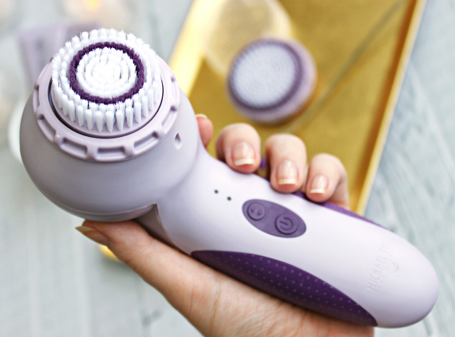 Sonic brushes are currently the best way to thoroughly cleanse the skin. Unlike oscillating brushes [spinning] that are basically mechanized scrubs, sonic technology helps to gently push out dirt, oil, makeup, and dead skin cells clogging the pores with speeds up to 300 pulses per second. Michael Todd Soniclear Cleansing System can be used at six different intensity settings – three for the face, and three for the body; the control handle automatically adjusts the speed based on which brush it currently has attached. Well aren’t you a smart little trinket!