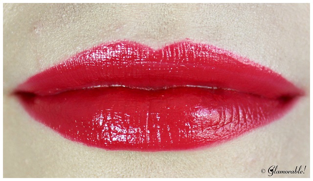 Red Extreme can be described as a vibrant, bight red with cool undertones, and it’s the perfect shade to wear if you want your teeth to look whiter. It applies smooth and even, and sets with fantastic sateen finish. The wear time can vary depending on whether I snacked or not, but on average I’d say 5 hours or so is a fairly good estimate.