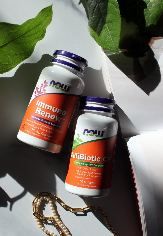In preparation for the next six months of rain and snow, I’ve added two of my most-trusted immune support remedies to my daily supplement lineup.* NOW® AlliBiotic CF™ Softgels* and Immune Renew™ Veg Capsules* have helped support my immune system for the last several years, and I always take them together.* In fact, I love these so much, I bring them on all my travels – or, should I say, “brought” since traveling is not a thing right now, haha!