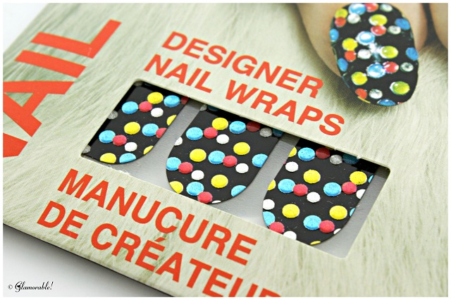 Doodad Colour SS13 is made out of thick material, which almost reminds me of duct tape. The pattern is a black base with scattered yellow, red, blue, white and silver 3D dots. It was actually pretty hard to apply on my nails, because my nail beds are curved, so you almost need superglue to make the wraps stick properly. Too bad, because I really like the pattern, but I might try to re-create it using regular nail polish.