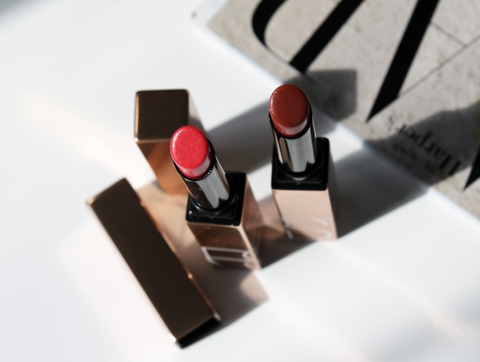 L to R: NARS Afterglow Liquid Blush Secret Lover; Afterglow Sensual Shine Lipstick No Inhibitions, High Gear.