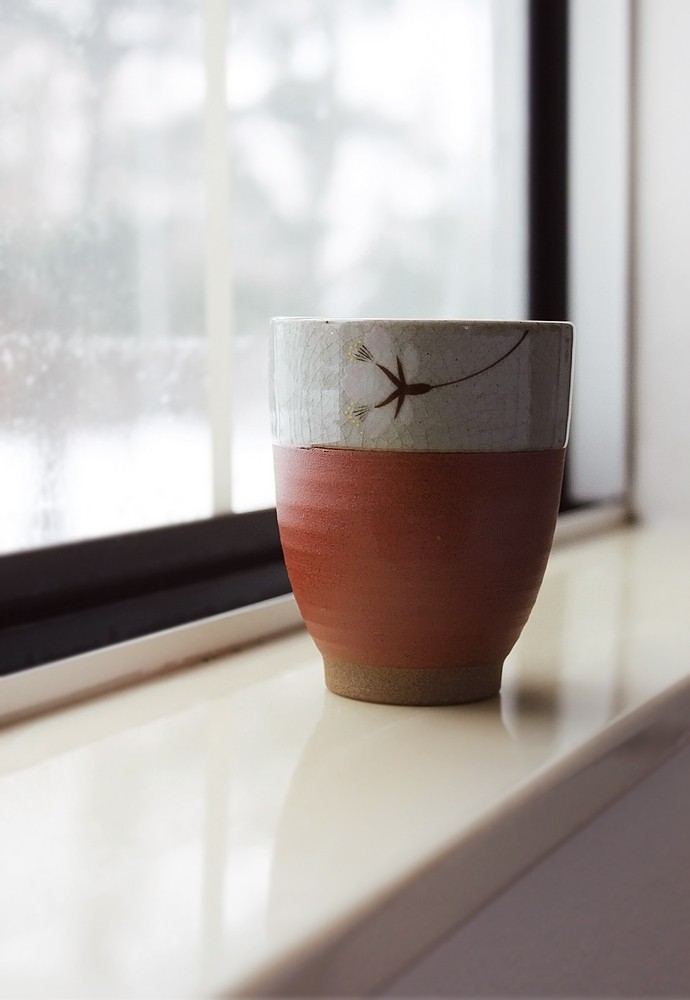 Momoyama Blossom Red Cup fits just the right amount of tea, so I can sip it slowly before it gets cold. And it feels so nice to touch when I hold the cup with both hands!