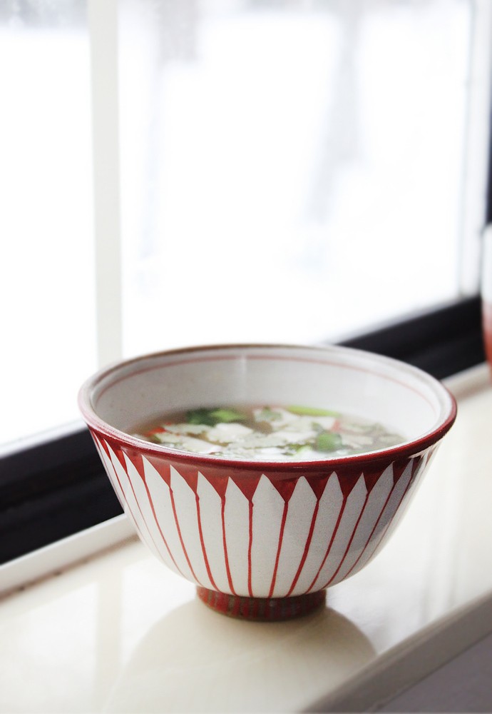 Hasamiyaki Red Chrysanthemum Bowl can be used for soup, dessert, noodles, rice, and any other side dishes.