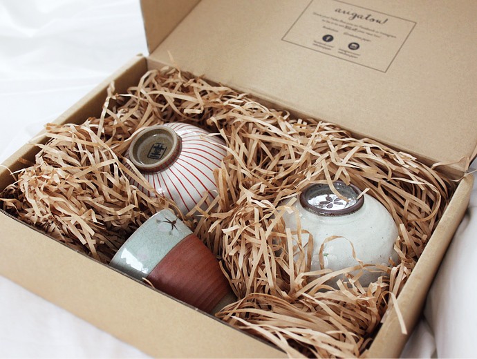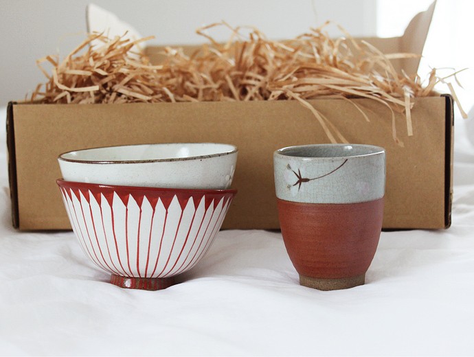 After browsing the Neko Box Shop, I decided to buy Sakura Matcha Bowl by Saikai Toki, Hasamiyaki Red Chrysanthemum Bowl, and Momoyama Blossom Red Cup.