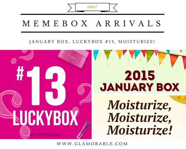 I took a break from posting about Memebox, because I don’t want Glamorable to seem like one huge Memebox commercial. At this time there are three new boxes available: The January Box [Global #19], Luckybox #13, and Moisturize, Moisturize, Moisturize!