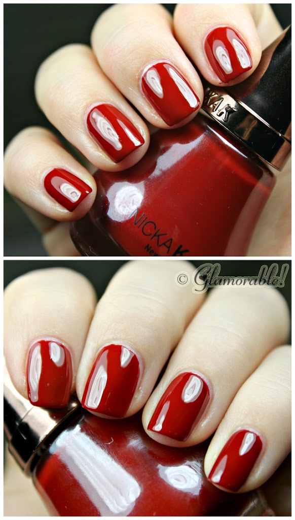Ripe Apple came out as part of Nicka K’s new redesigned collection of nail polishes, and is best described a highly pigmented opaque cool deep red apple creme.