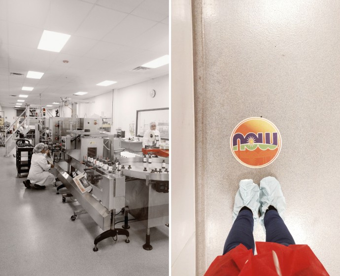 NOW® makes more than 1,400 products, so I was expecting to see a pretty large factory, but it was even bigger than I imagined. The inside of the facility was immaculate! I’ve been on factory tours before and none of them were ever this clean. There was almost an air of sterility to this cleanliness, everything just looked so shiny and polished. We were guided by NOW® Nutrition Education Manager Neil Levin, who showed us some of their most expensive lab equipment and even let us take a closer look at some of the machines and conveyors making our favorite supplements, essential oils, skincare etc. Watching those big machines stick labels on the bottles was oddly satisfying. 🙂