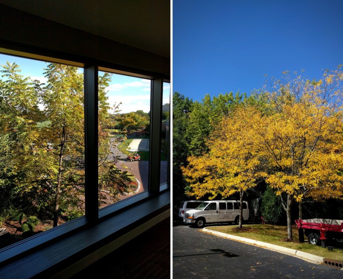 We arrived at Eaglewood Resort & Spa where I met with Alana, who has been my NOW® point of contact for a very long time. It was so nice to finally meet her in person! Alana handed me the key to the room, which was on the second floor, so I had a nice view of the golf course. There’s nothing quite like the fall in the Midwest – the colors were spectacular!