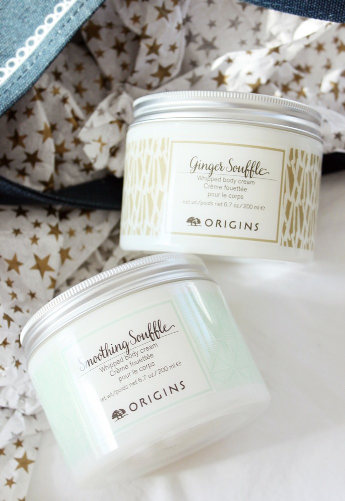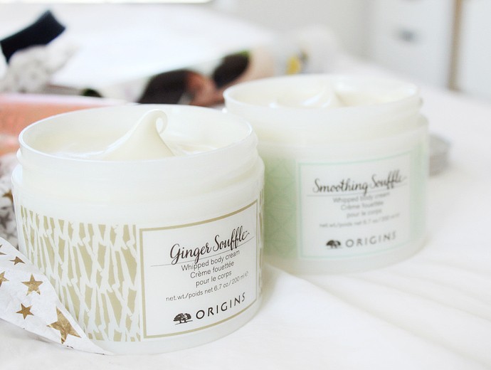 Top to bottom: Origins Precipitation Continuous Moisture Recovery for Body, Whipped Body Cream Ginger Souffle, Whipped Body Cream Smoothing Souffle.
