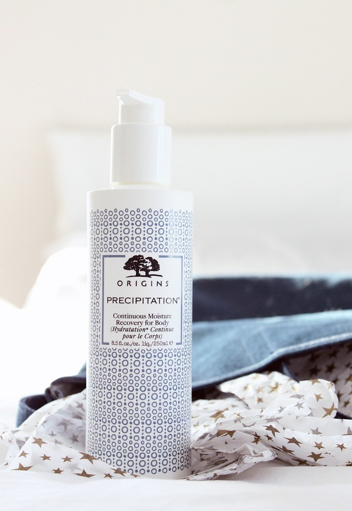 Origins Precipitation Continuous Moisture Recovery for Body comes in a tall plastic pump bottle and doesn’t require much counter space.