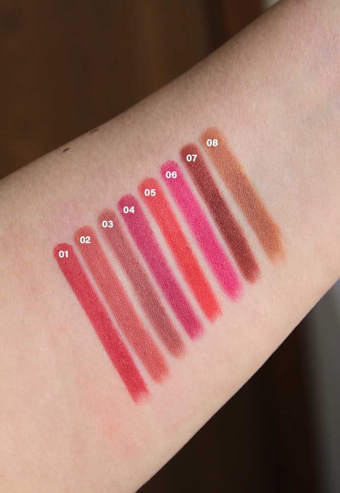 I like that these crayons are small and can be used with better precision as I tend to mess up my lipstick application pretty often. The formula is fairly long-lasting and the color fades into a lip tint slowly over the course of the day. You can easily layer multiple shades to get an ombre look that will actually stay that way on the lips without mixing too much. The only potential con is perhaps the fact that the formula is a bit stiff and feels more like a soft lip pencil than a lipstick.