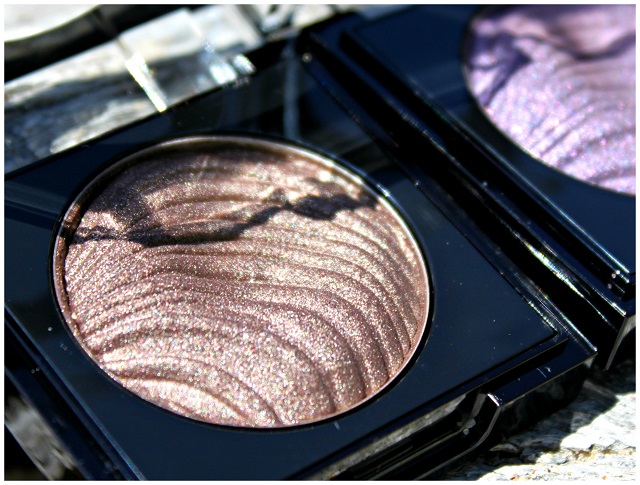 Bewitched is a duochrome shade that looks like a sandy taupe in the pan, but when applied to the skin it turns rusty and reveals subtle golden and beetle green shimmers. This shade is perfect to wear alone all-over the lid, because the color will naturally shift from creases to blended out areas, making it look like you’re wearing three different products.