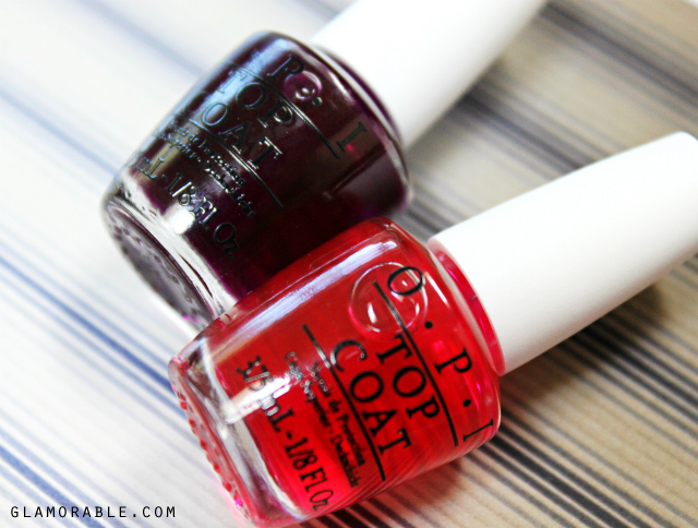 2. Now, take a bright sheer jelly nail polish – like one of these OPI Sheer Tints in Be Magentale With Me and Don’t Violet Me Down – and swipe a semi-thick line along the length of your nail. It doesn’t have to be neat.