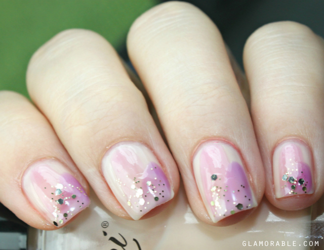 3. Repeat Step 2 with a different sheer nail polish, layering it roughly over the first color. Again, just one quick swipe is enough.