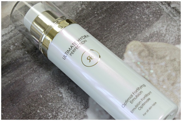 For this review I received Optimal Fortifying Emulsion and Ultimate Defense Illuminating Cream. The packaging for both products is very elegant and classic, but also has a twist – those white parts have a subtle violet shimmer/glow to them. Being a huge fan of stylish packaging, I have both of them on display on my vanity table along with some of my other favorites. Both products have the same fragrance, which is a tad bit strong, but not unpleasant – they smells sort of fresh and fruity, I can even pick out grapes and peaches in the bouquet.