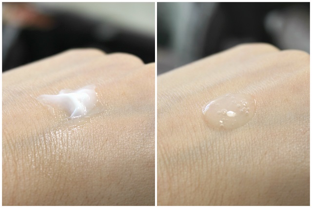 | Product texture (L to R): Ultimate Defense Illuminating Cream, Optimal Fortifying Emulsion |