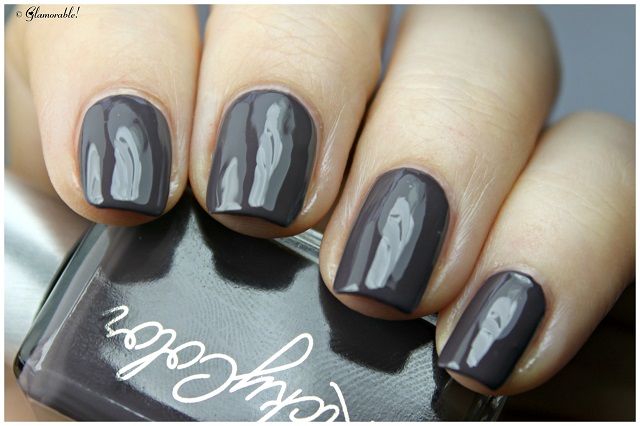 919 Grade Pending is a very pigmented dark greige creme with a hint of purple [looks like this color is called Rum], pictured with two coats of nail polish and a top coat.The formula is just right, not too thin not too thick, making the application a breeze.