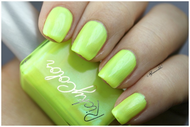 861 Rooftop Margaritas is a neon yellow creme jelly with fine cool green shimmer, pictured with two coats of nail polish and a top coat. This color is very unique, mainly because of the barely visible green shimmer peeking through. It’s semi opaque, so it can be used in a jelly sandwich with some glitters. Great color for Summer, I’ll definitely be rocking it this year!