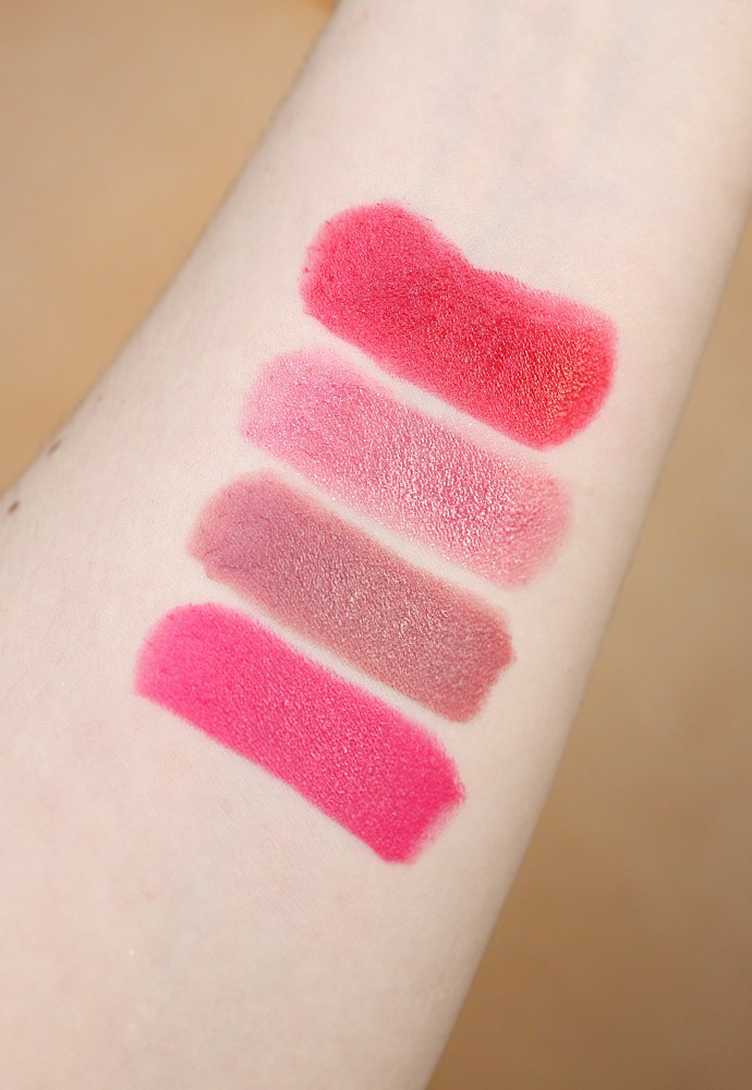 Swatches from Top to Bottom: 500 Diva Red, 270 Crystal Mauve, 240 Tower of Mauve, 410 Dashing Raspberry.