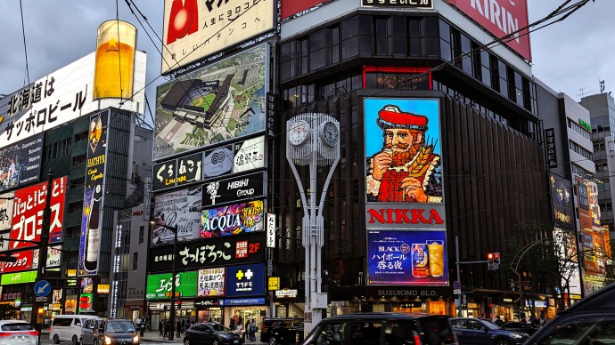 Famous Nikka billboard in Sapporo.