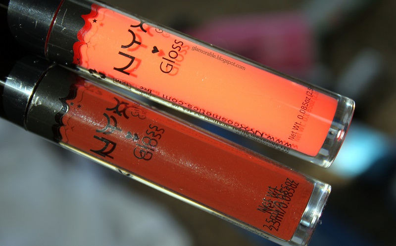 Both of the colors are very lovely! Apricot is a nice girly orange-pink which looks great with my skin tone, and Vamp Red is a very dark vampy brownish purple red. The best part about these glosses is that they’re very pigmented, they look on the lips exactly like they do on the brush. Several coats make your lips look ultra glossy and opaque. These glosses are no longer sold on NYX website, I’m assuming they have been discontinued. The online store I could find them at sells them for just $2.50 per unit, which is fairly cheap. As you can see the orange gloss spreads nicely and evenly on the lips, while the Vampy one is a bit more unforgiving – it accentuates every little crack and wrinkle.
