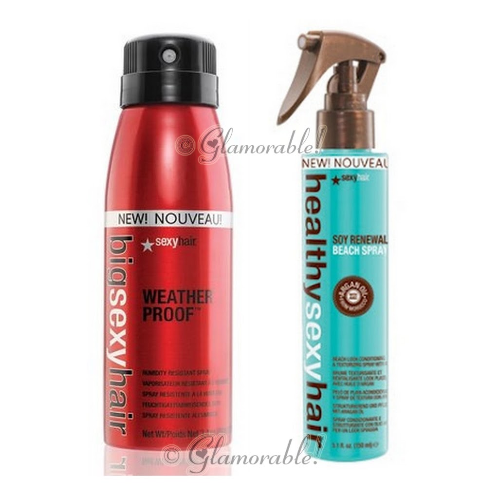 Two things above are made by Sexy Hair. The top one is a Soy Renewal Beach Spray and the round can below is probably Weather Proof Humidity Resistant Spray.