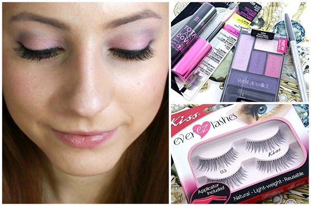 Now that we have our base, it’s time to add some color, and particular this eye look was inspired by Pantone Color of the Year for 2014 – Radiant Orchid. New Wet n Wild Color Icon Eyeshadow Palettes generated a lot of buzz in the blogosphere, because the shades are so vibrant and fun! For this tutorial I picked up 393A Floral Values, featuring lilac and rosy hues, perfect for the look I’m trying to achieve. I followed the directions on the back of the package and used the lightest color as a base, next I applied the rosy shade on my eyelid, lilac on the brow bone, indigo in the crease and purple to add some definition to the overall look. After that, I smudged Neutrogena Nourishing Eyeliner along my top lashes, followed by two coats of Milani Total Lash Cover Mascara. I pretty much never use falsies, but today is a special occasion so I decided to give them a try. For this look I chose KISS Ever EZ Lashes in Style03, I think they are a nice middle ground between glam and natural. At this point I realized that I completely skipped blush, so I just dabbed the pinkest shade from Wet n Wild palette on my cheeks, and it actually worked quite well 🙂