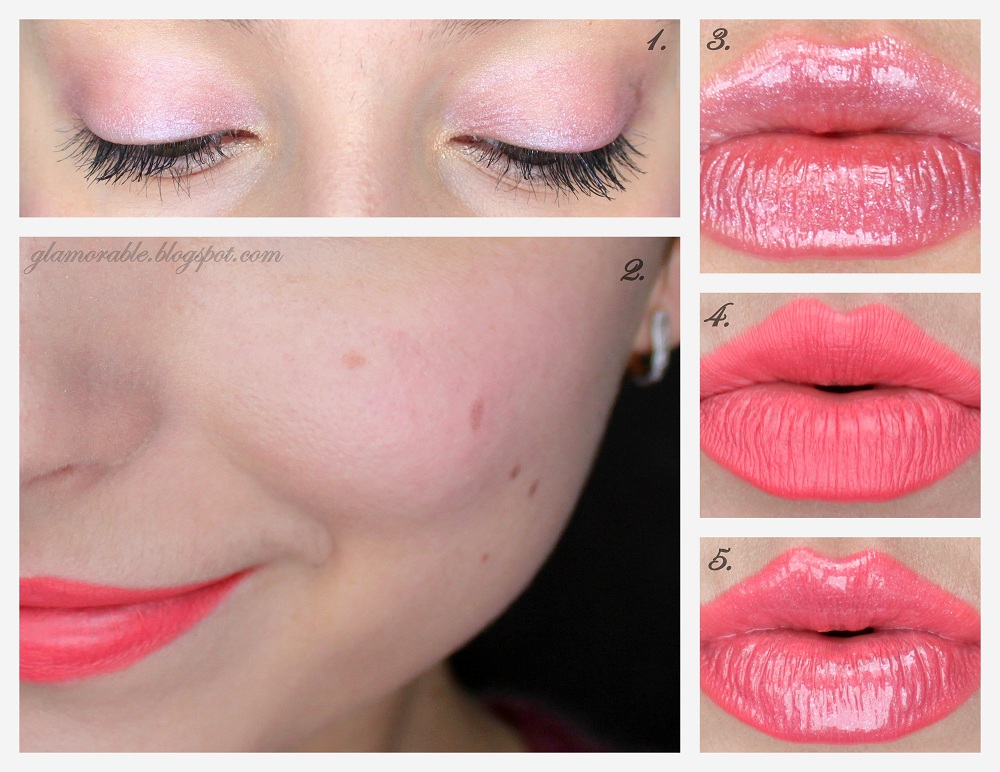 Update: I just added these two new swatches. Here’s the blush worn on the lips (top) and under the lip gloss (bottom). Enjoy!