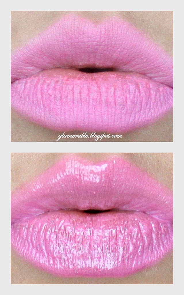 - Lip gloss in Pink Oasis over Lip Liner in Tipsy