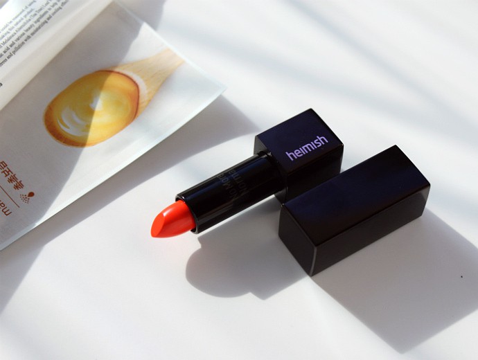Initially the color sets with a comfortable buttery finish and satiny sheen, but if you fancy a matte lip, patting the lips gently with a clean napkin removed the gloss while preserving the intensity of the color. Day-off is a warm, reddish tangerine orange, and it looks amazing with my fair skin tone. The color is everything I love in the summer, it’s young, fun, and effortless, and it makes me look put together even if I’m not wearing a lot of makeup that day. I honestly can’t recommend this range enough, you guys should totally check out other Heimish lipstick colors because this is a hidden gem! They’ve got plenty of more wearable everyday neutrals, pinks, and reds.