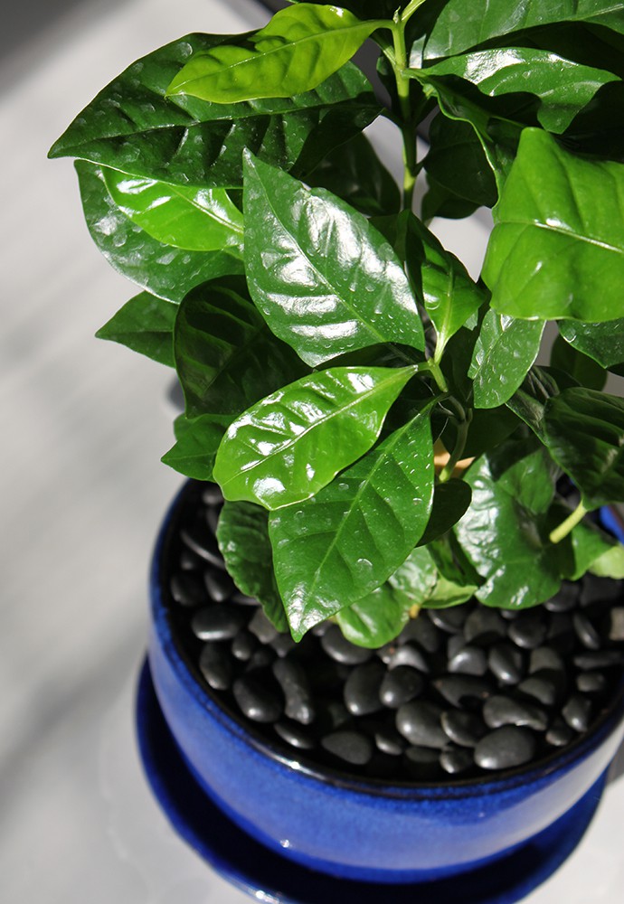2 // Coffee trees prefer a warm and humid environment. We keep our apartment pretty warm and the temp inside never drops below 65°, but it’s not very humid. We’ll see if it’s okay with lower humidity, otherwise, I might need to mist the leaves from time to time.