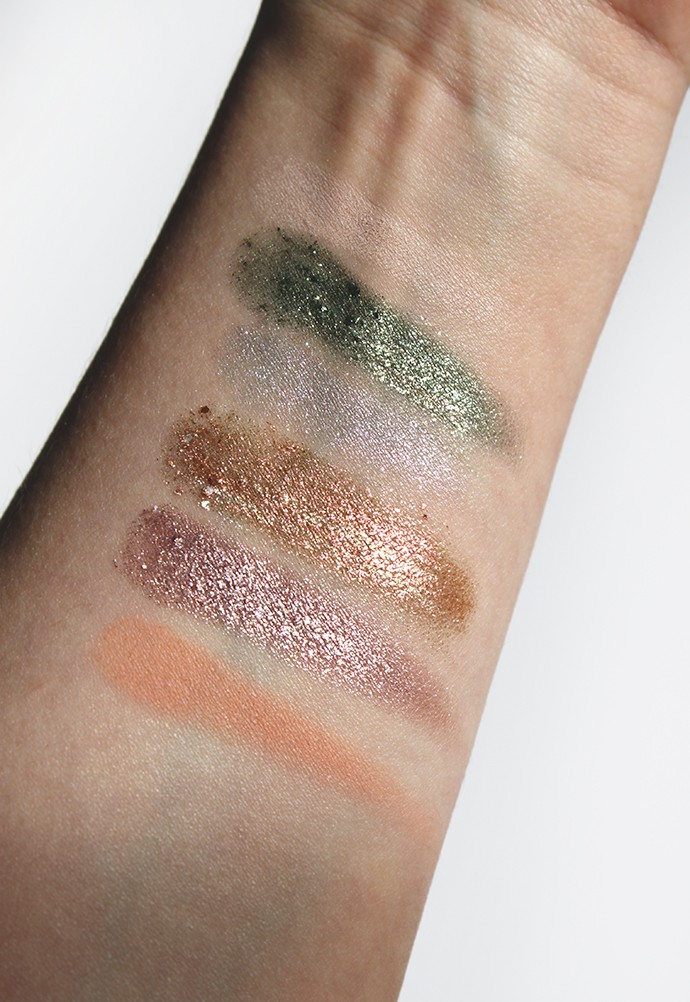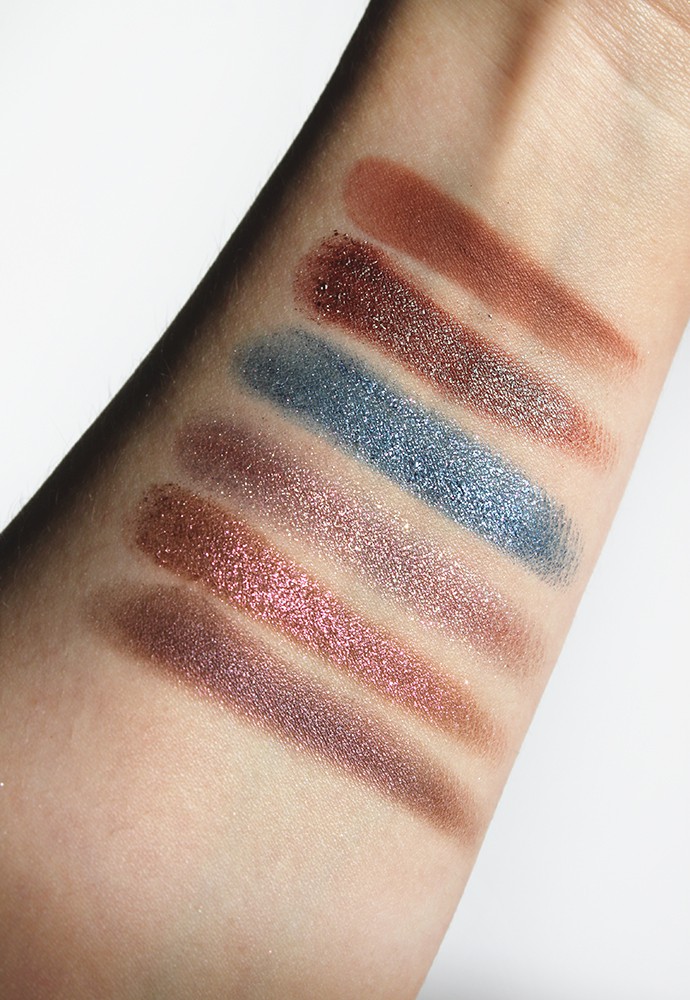 I don’t have any other products from the Stoned Vibes collection so I can’t comment on how well the marbleized shimmers layer over the eye pencils. They sure don’t layer well over the included mattes though, which is unfortunate, because the new formula looks gorgeous in the pan. They fared slightly better on bare skin and over primer, so they can still work well for someone who likes shimmery looks that aren’t overly complicated. The non-marbleized colors performed best in the crease and as the inner and outer corner accents, so they weren’t completely useless, but the formula was lacking – there’s just no comparison between these and the eyeshadows from the permanent collection.