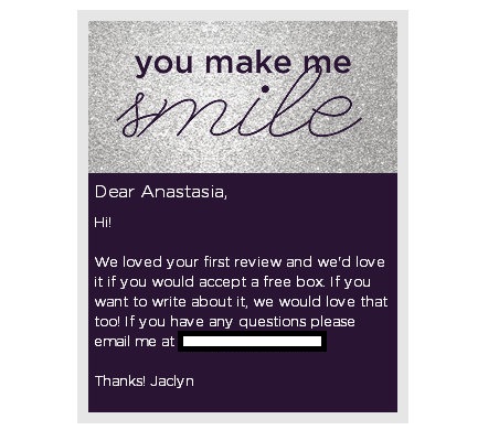 I clicked the link to redeem my gift and found a lovely message from Jaclyn. She said that they enjoyed my previous box review and would like to send me another box for free. That was so nice of them, and I definitely didn’t expect anything like that! I had to choose between a jewelry box and a makeup box, and although the jewelry option seemed very appealing, vintage-style items just wouldn’t go well with what I normally wear, so I opted-in for the cosmetics again.
