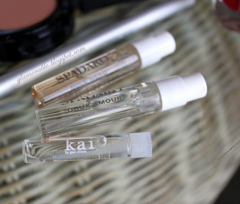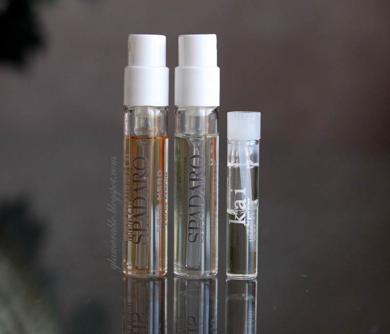 Perfume samples: Spadaro “Doux Amour”, “Sole Nero”, and Kai Perfume Oil