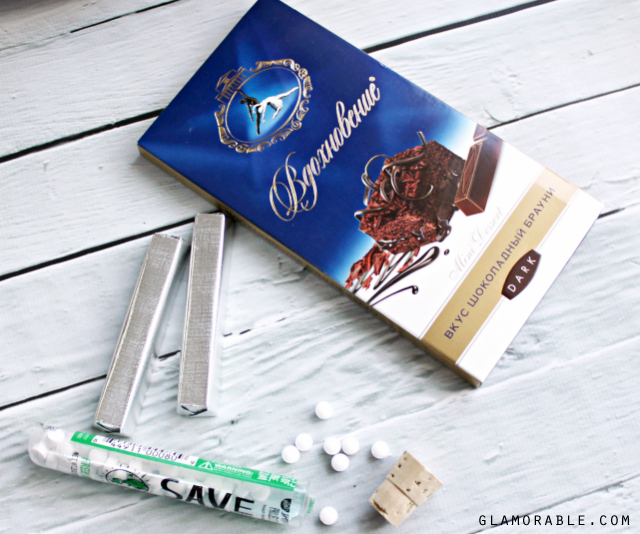 Next up: SNACKS! Chocolate is not the healthiest thing on Earth, but I tuck a bar in all of my purses in case hunger suddenly strikes. Sometimes I’m a good girl and buy granola bars or protein bars, but at this time it’s just chocolate, and a pack of mints.