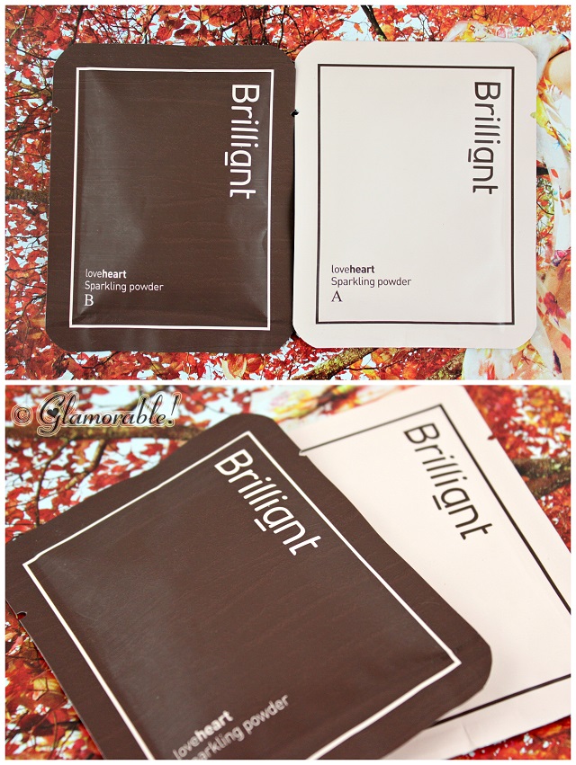 BRILLIANT Loveheart Sparkling Powder A,B – I had no idea what these packets were, so I had to google the instructions. Apparently, they contain two powders to carbonate and mineralize the water you wash your face with, providing deep cleansing and whitening results.