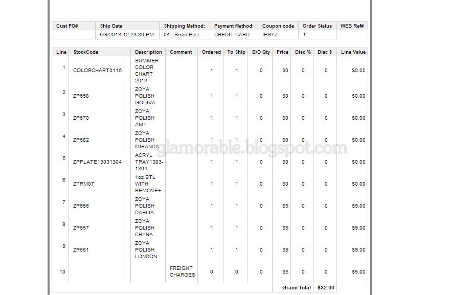 I got this deal to work by adding six polishes from this page to my cart, and then simply used the code IPSYZ to check out. Below you can see a screenshot of what I ended up getting.